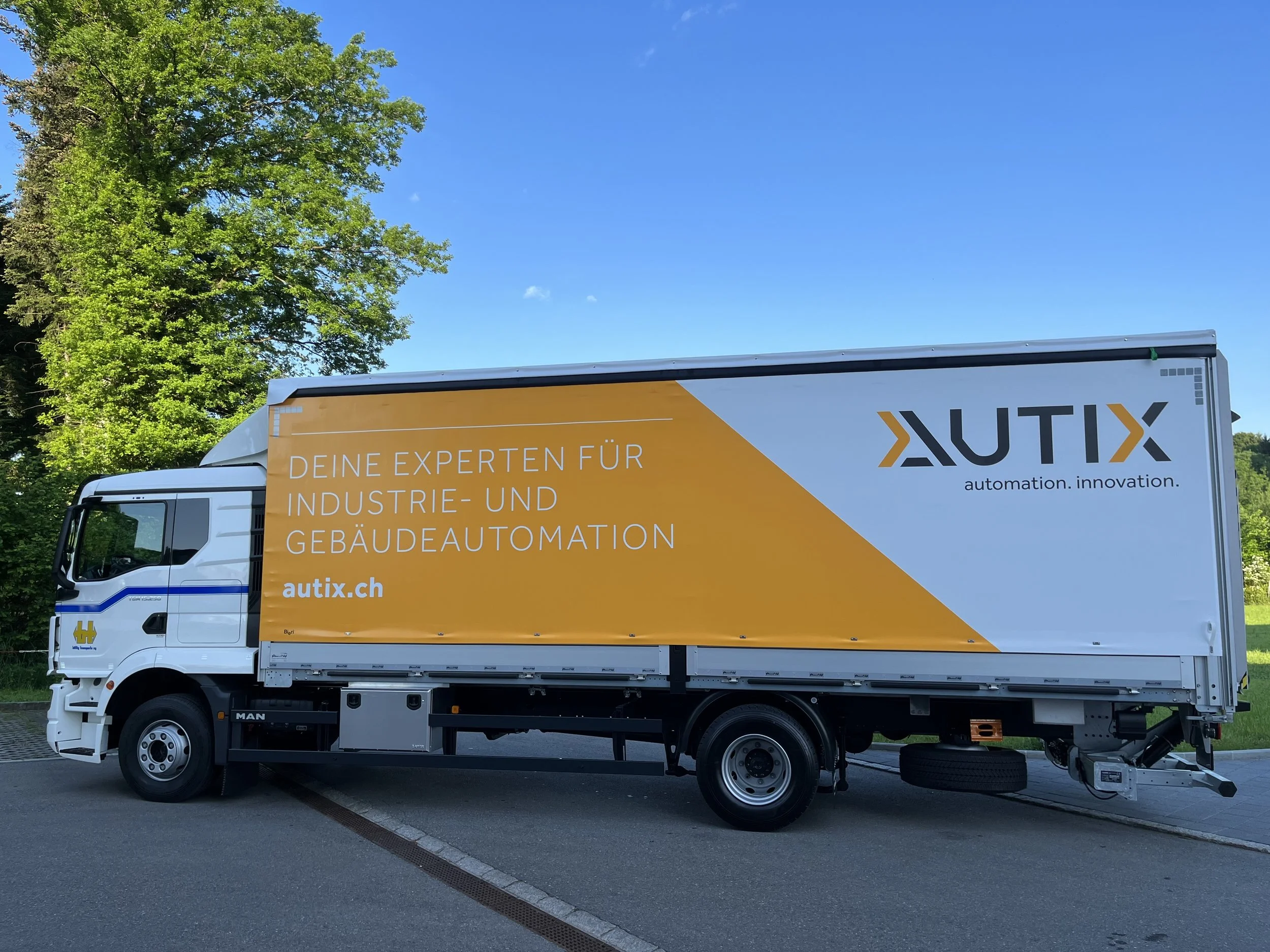 Autix ist nicht nur an ihrem Domizil in Rain innovativ, verlässlich und professionell unterwegs, sondern neuerdings auch mit dem beschrifteten Lastwagen auf der Strasse. Damit spedieren wir unsere Maschinen und Roboter so, wie sie es verdienen: mit viel Sorgfalt und dem nötigen Respekt.